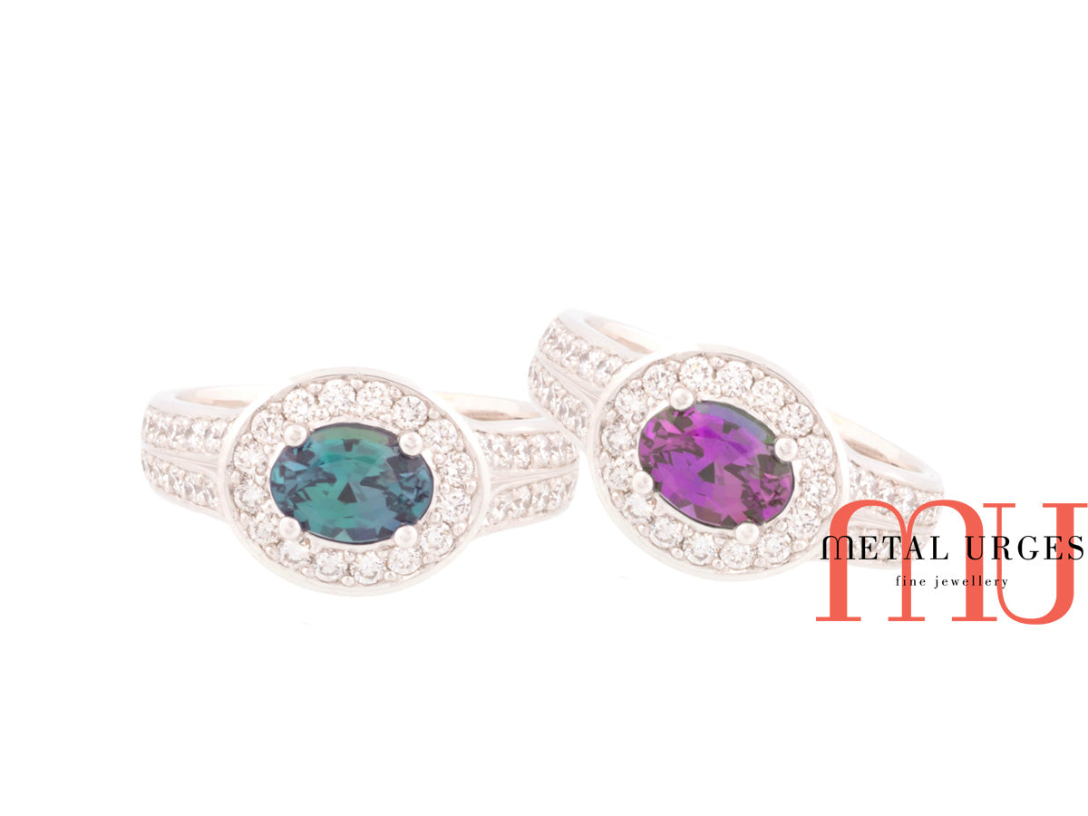 Metal Urges has formed a personal relationship with the small number of miners and gem traders who have access to fine quality colour change Alexandrite. Due to its unique colour change properties, Alexandrite is almost impossible to photograph.