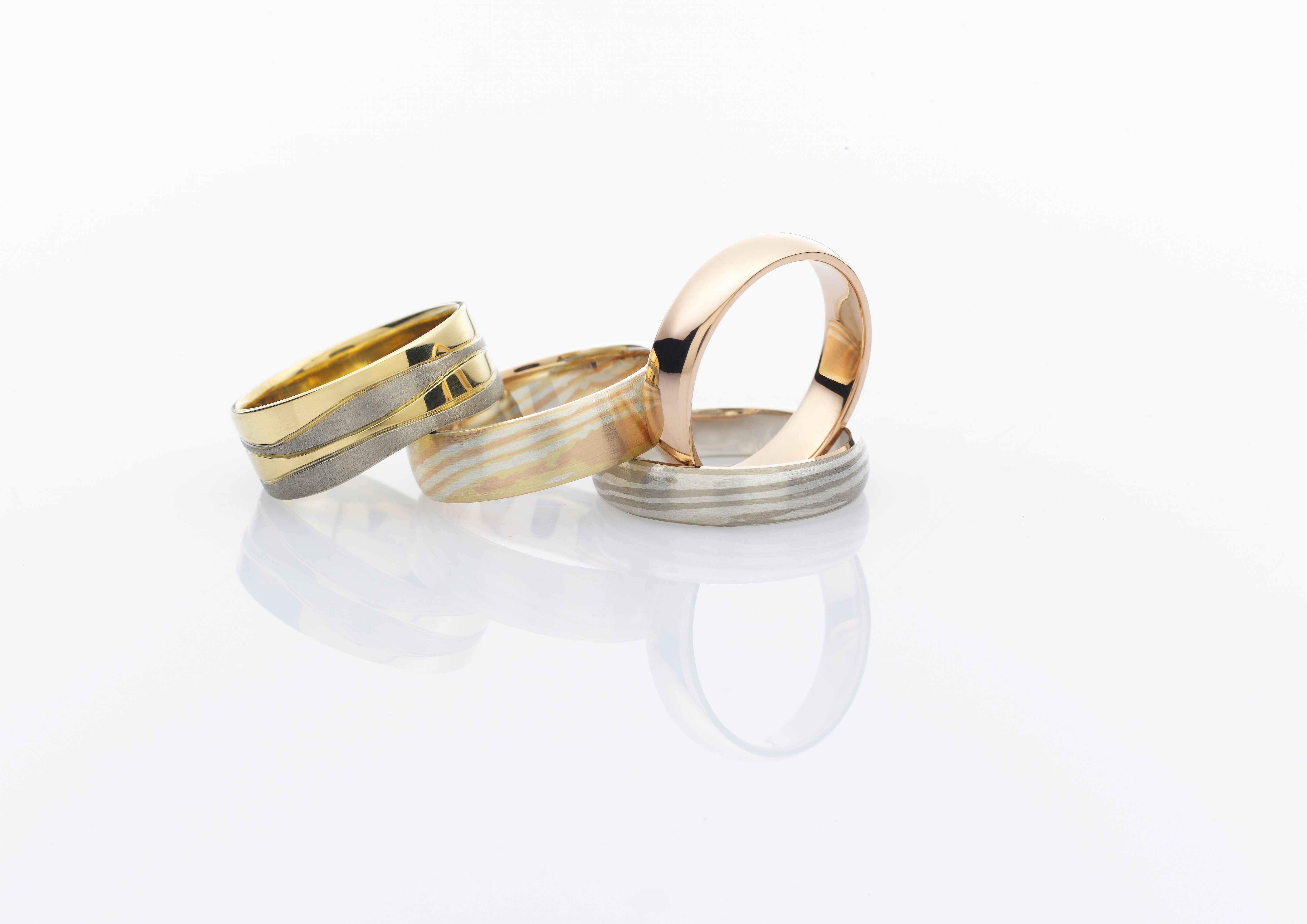 On offer is a full range of traditional men’s wedding rings and bands along with some more unusual and unique options such as Mokume Gane and meteorite. We provide a myriad of customisations with a diverse range of textures, layout and gemstones. We accept all challenges.
