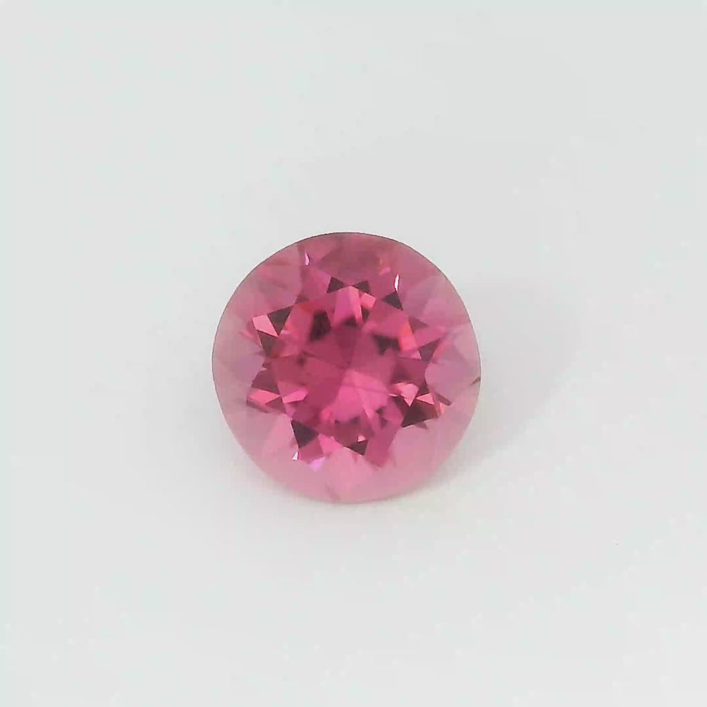 0.97ct Pink Round Brilliant cut Tourmaline. This natural gemstone showcases a captivating pink hue and brilliant sparkle. Perfect for bespoke jewellery, its inherent beauty and unique characteristics make it a remarkable find for discerning collectors.