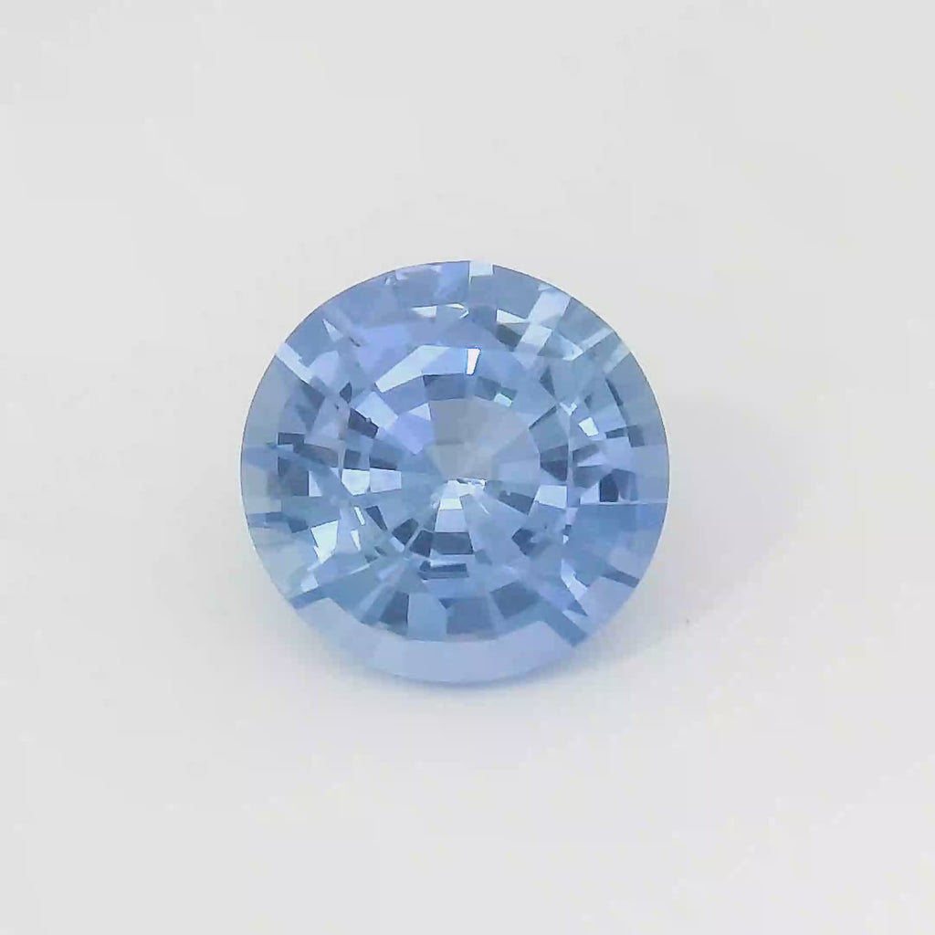 1.43ct, Blue Round Brilliant cut Sapphire. This natural sapphire exhibits a vibrant blue hue and exceptional brilliance, making it ideal for bespoke jewellery designs. Perfect for engagement rings or statement pieces, showcasing its unique natural characteristics.
