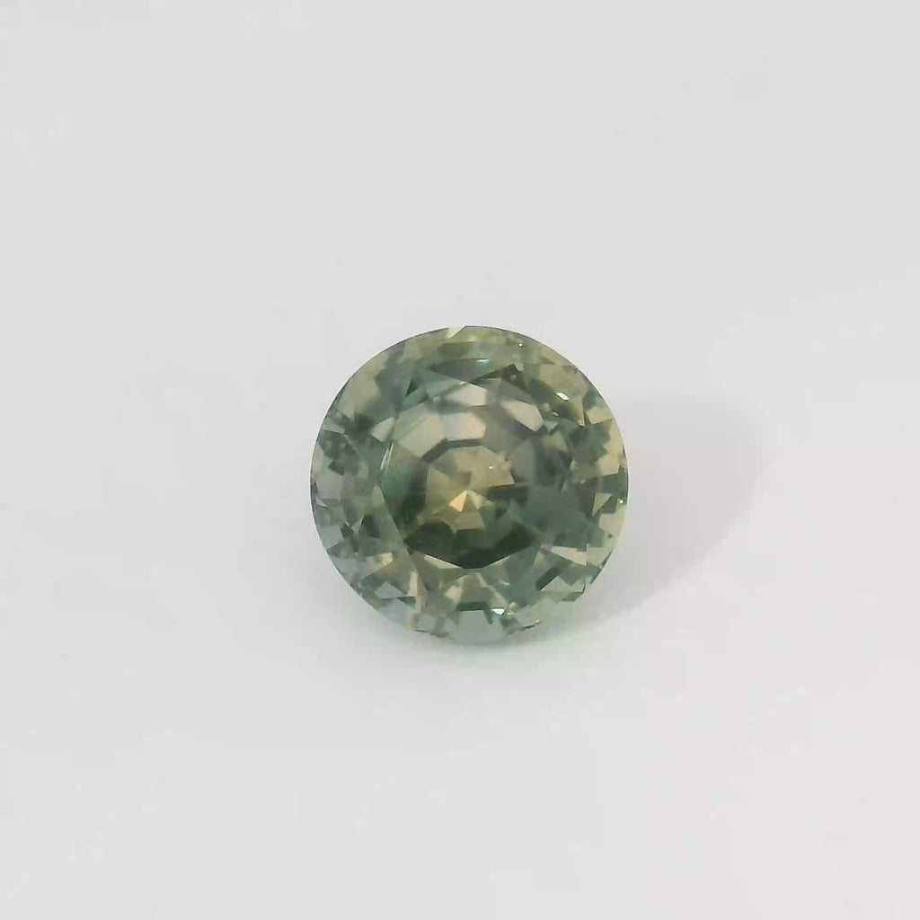 1.67ct Green, Purple Colour Change Sapphire, Round Brilliant cut. This natural sapphire exhibits a distinct colour shift, showcasing dynamic green and purple hues. Ideal for bespoke jewellery design.