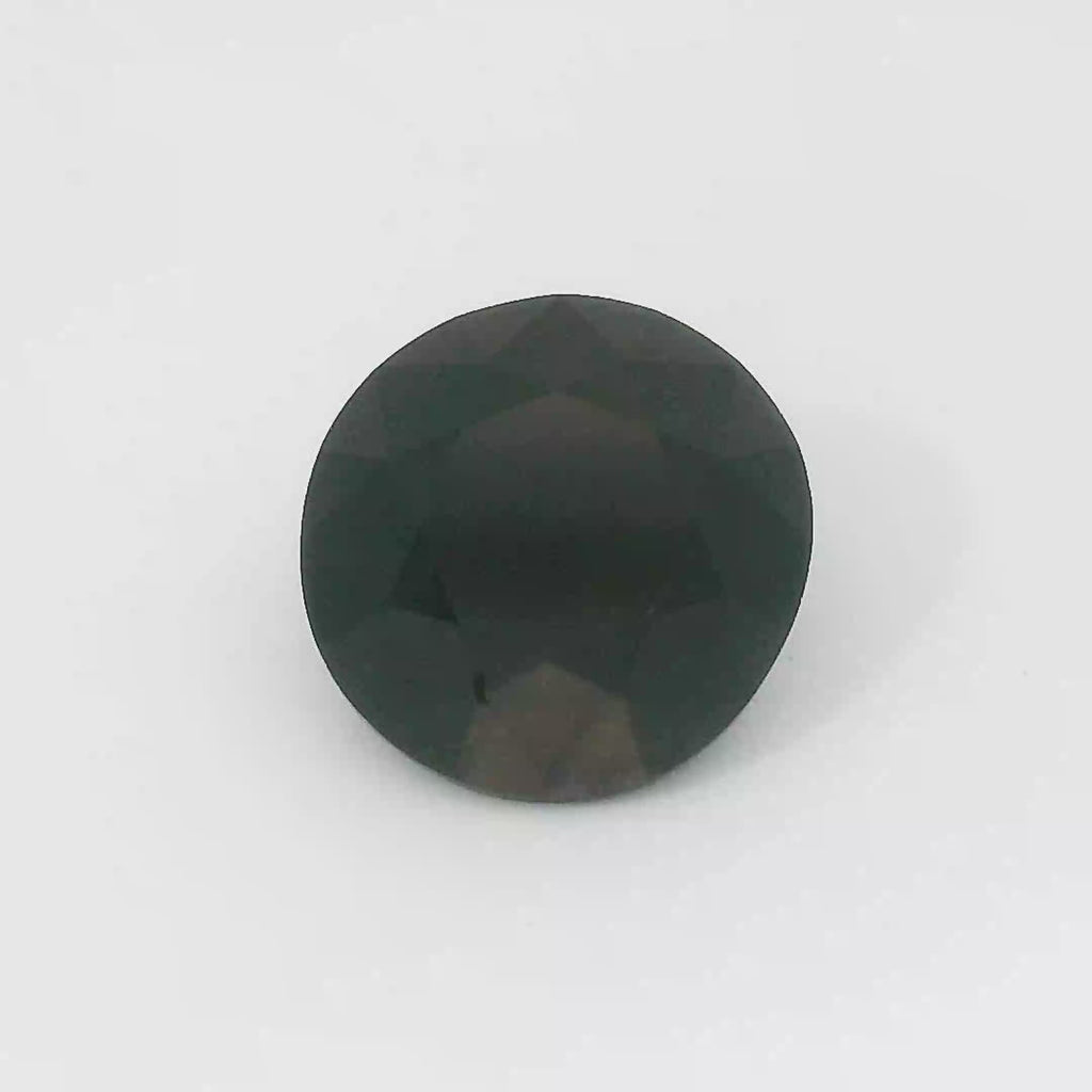 1.96ct, Black Round Brilliant cut Tasmanian Sapphire. This natural gemstone exhibits a deep, rich black hue. Its brilliant cut showcases its natural characteristics.