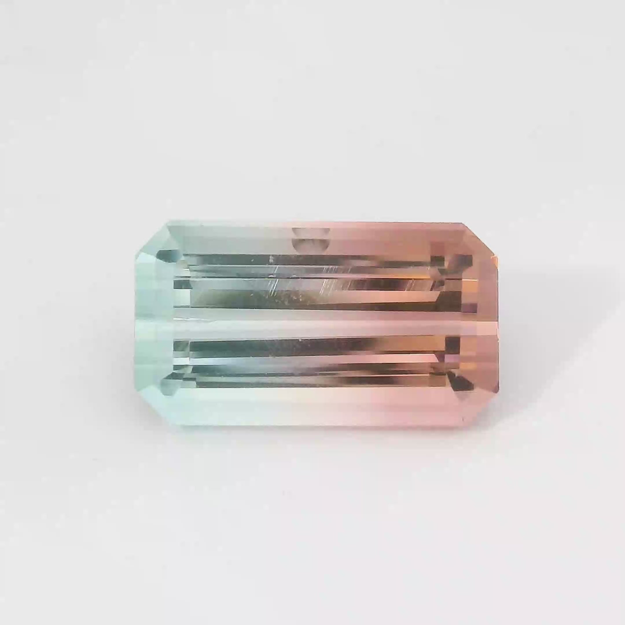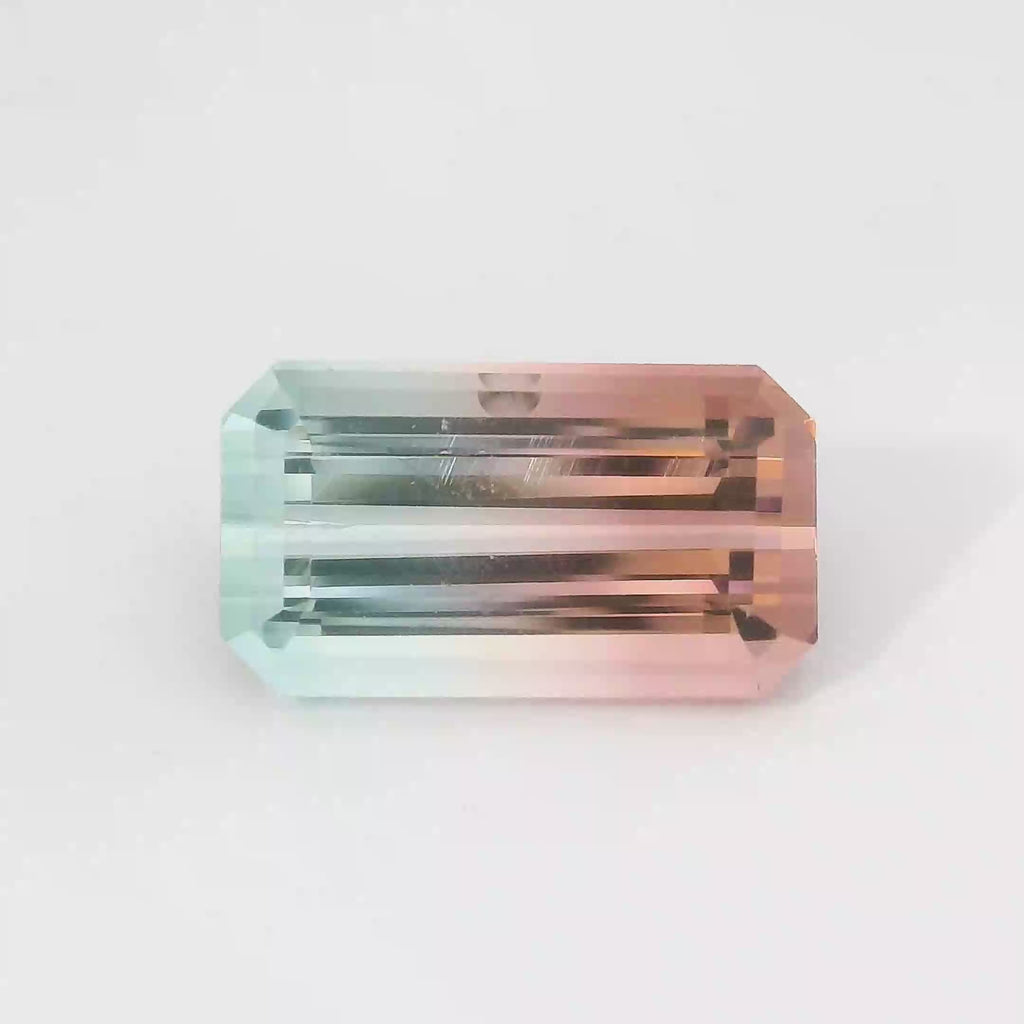 5.96ct Bi-colour Tourmaline, featuring blue and pink zoning in an elegant Emerald cut. This natural gemstone displays superb clarity and vitreous lustre, making it an exquisite selection for bespoke jewellery.